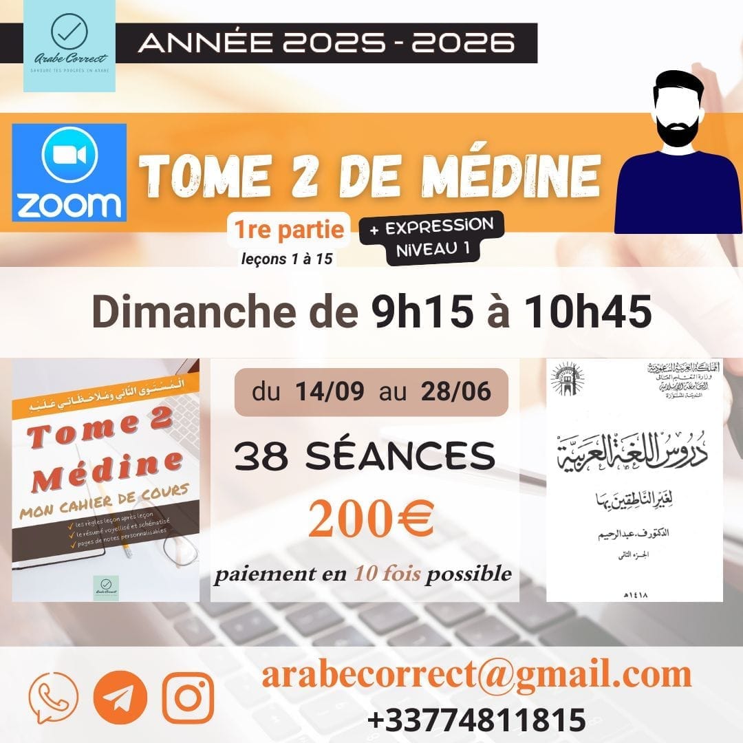 Étude complète de la 1re moitié du célèbre Tome 2 de Médine en groupe à distance :